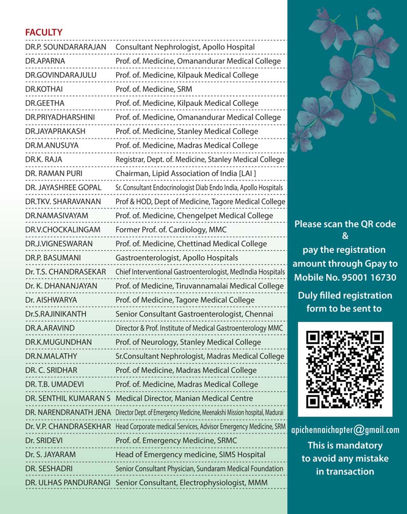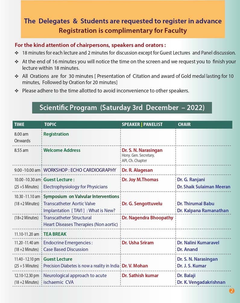 Herewith find the initial brochure  & Registration Form .We request you to register as early as possible to have a good face to face meeting . The scientific program is getting finalised .We will be in touch with you in the next few days . Anticipating your  co-operation and active participation . The conference is also preceded  by All India Intensive Post Graduate Training Program which will be conducted at Govt. Stanley Medical College  Auditorium on Friday 2nd December 2022  which will benefit the Post Graduate students across TamilNadu .
