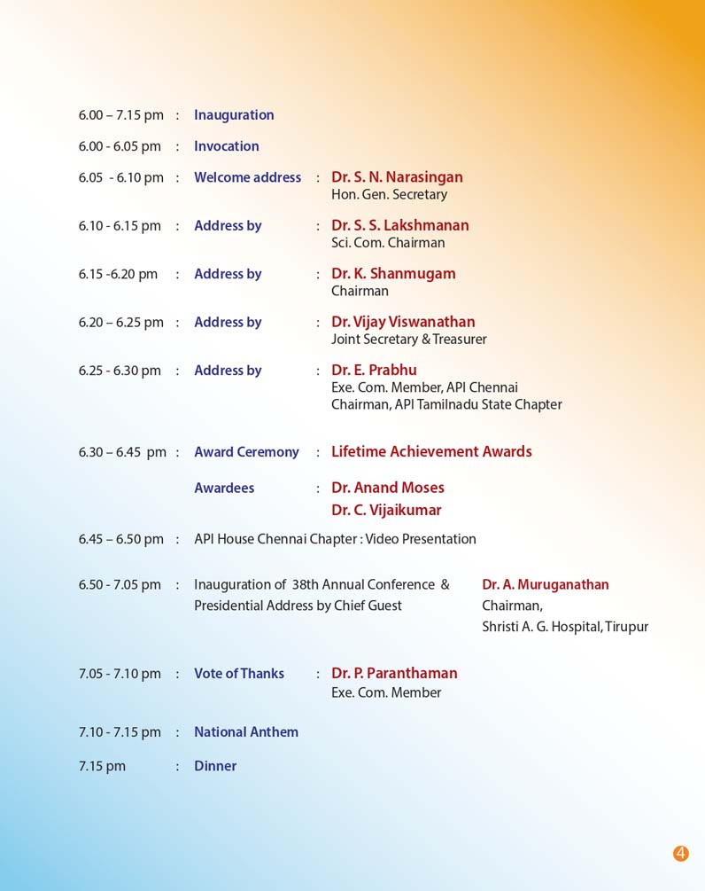 After coming out of many challenges pertaining to Covid Pandemic , we have decided to conduct 38th Annual Conference of API Chennai chapter on 3rd & 4th December 2022 [ Saturday & Sunday ] at Hotel savera , Dr.Radhakrishnan Salai , Chennai .